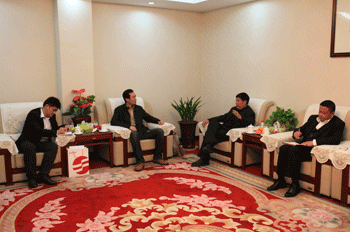 董事长高文班(右二)介绍公司情况,高文靠副总经理(右一)陪同